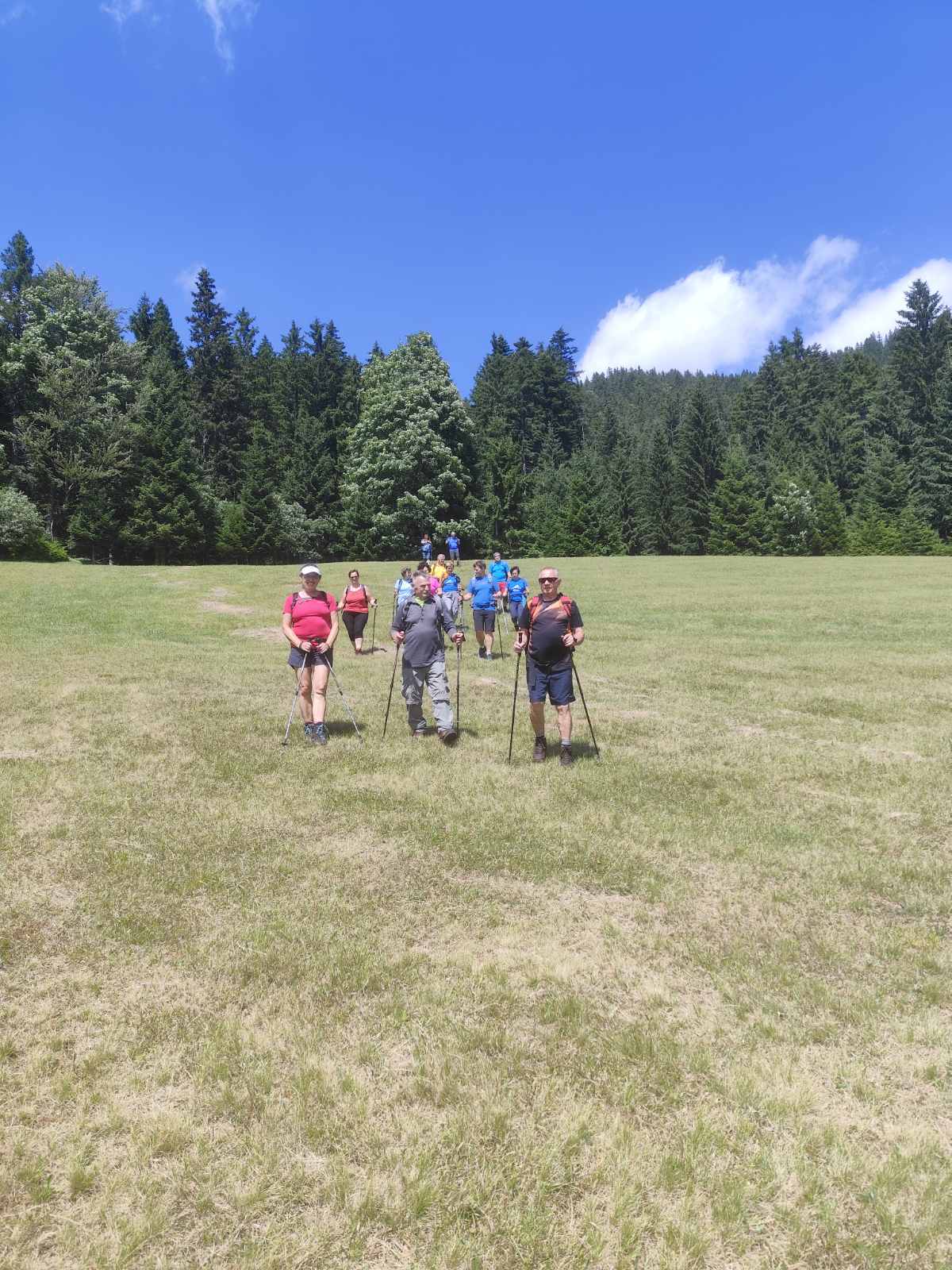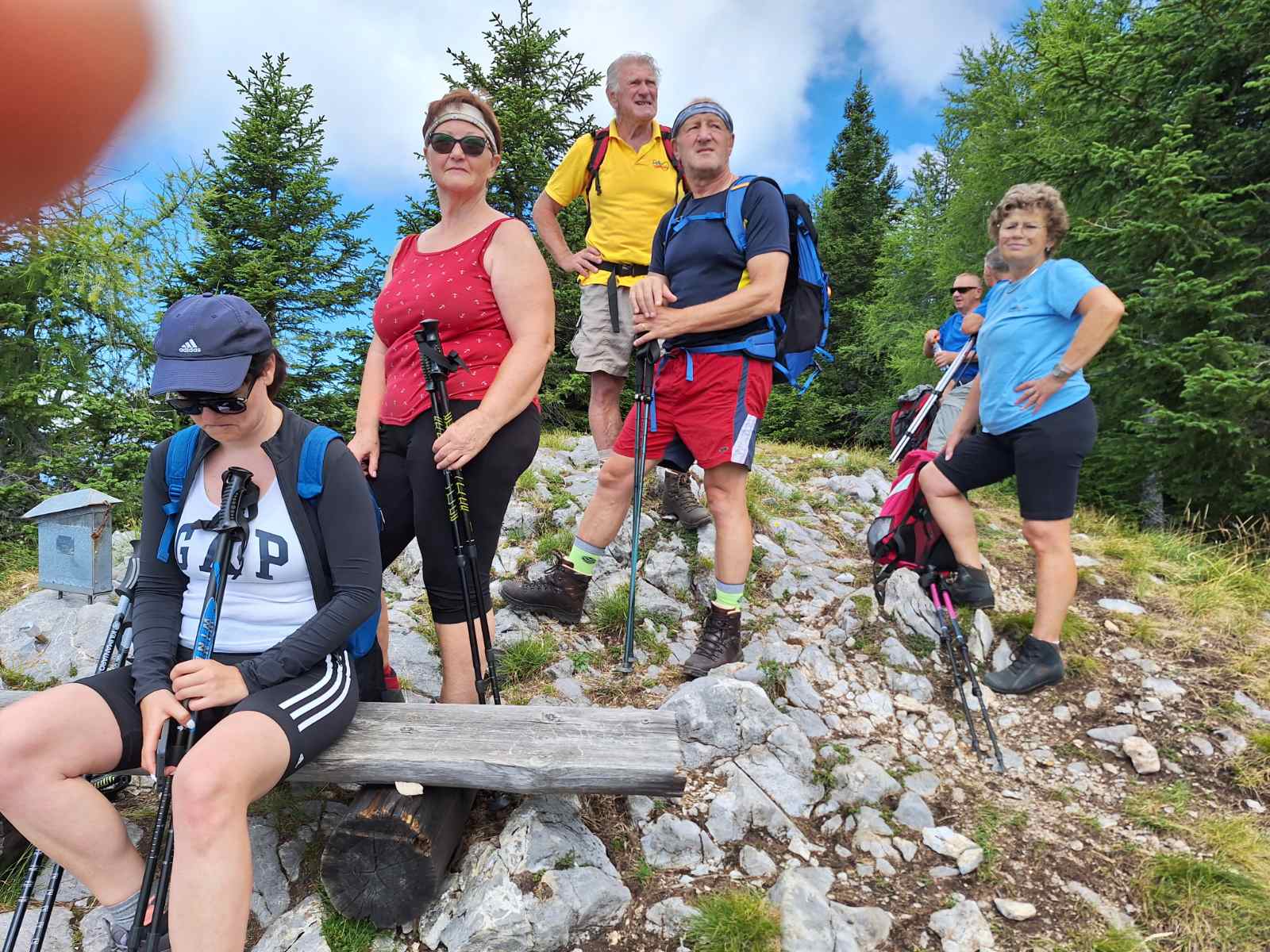 Od tu smo se podali do planine Konjsca in naprej do Bele peci. Tu smo uzivali v cudovitem pogledu na Storzic, Krisko goro, Tolsti vrh, Dobrco....celo Triglav smo opazili v daljavi. Pot v dolino ja bila zelo strma in soncna a dobre volje nam ni zmanjkalo. Bilo je veliko smeha zadovoljnih pohodnikov. Hvalezni smo domacinoma Izidorju in Jelki za cudovito vodenje in slastne kremne rezine.in Jancevim za organizacijo pohoda.