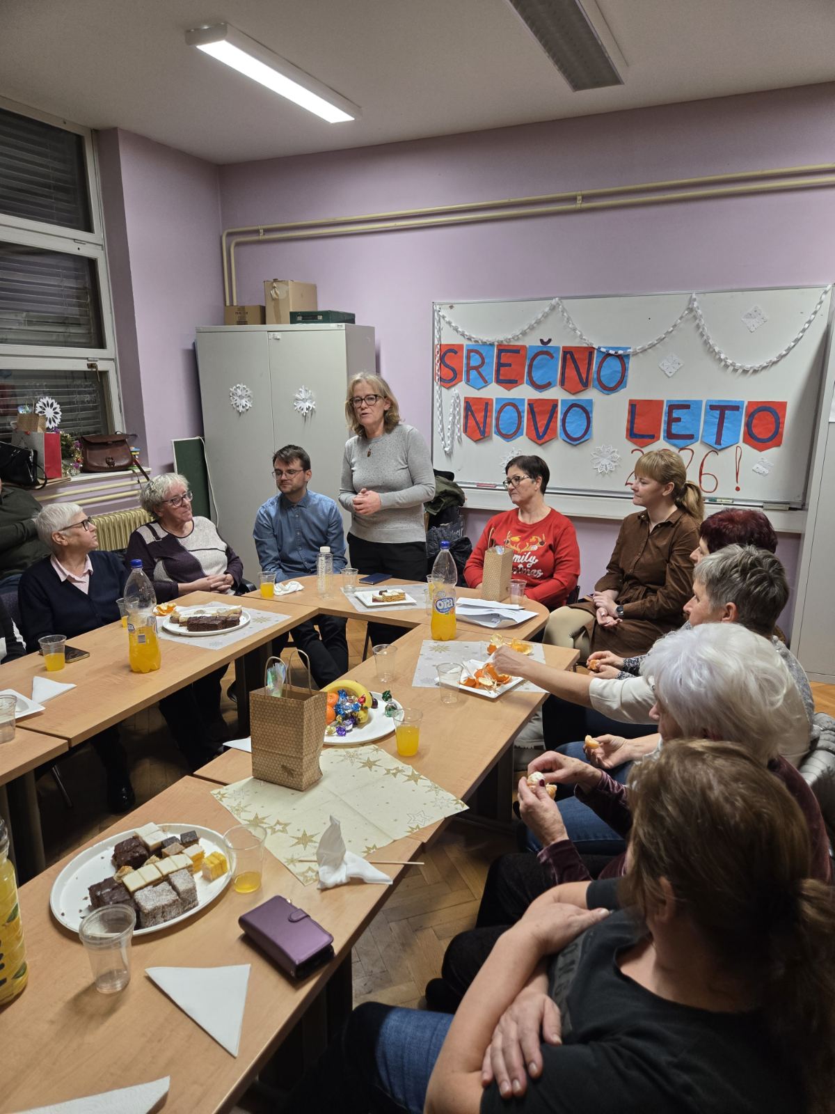 Kot se spodobi, ob koncu leta smo obudili lepe trenutke, ki smo jih doživeli v skupinah, na skupnih druženjih in tudi v krogu družine. Zahvalili smo se za delo in ves trud našim vodjem skupin. Ugotavljali smo, da smo ena velika družina, ki si zaupamo, pomagamo, smo sprejeti takšni kot smo in smo hvaležni za vse kar smo v tem letu pridobili pri osebni spremembi. Na koncu smo si še izmenjali darila in si zaželeli lepo praznovanje.